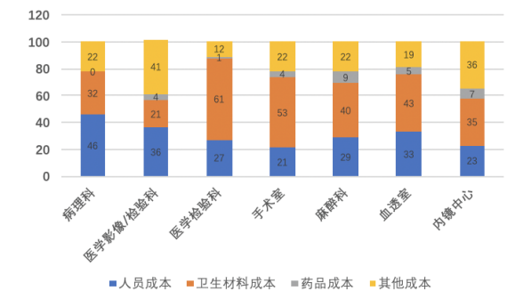 根據(jù)HIA發(fā)布的《中國首部公立醫(yī)院成本報告(2015)》,我國公立醫(yī)院各科室成本構(gòu)成中,病理科人員成本占總成本比達(dá)到46%,顯著高于其他臨床科室;檢驗、影像科室這一指標(biāo)分別為35%、27%。